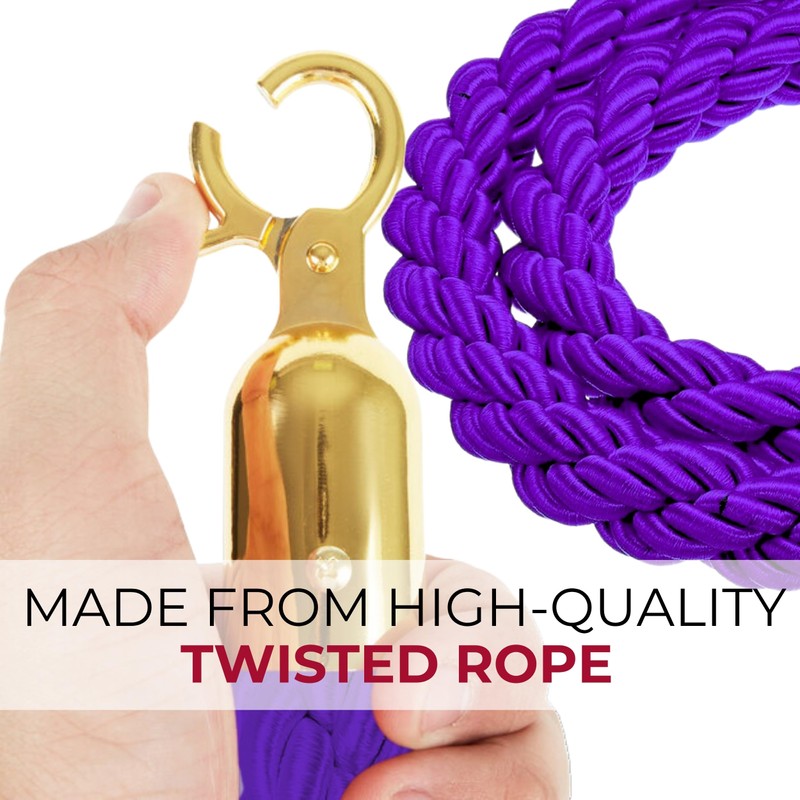 - ELEGANT DESIGN IN NEUTRAL TONE: The rich purple-colored twist adds a luxurious touch, and the polished gold hooks at each end easily attach to any rope and stanchion configuration for a refined presentation