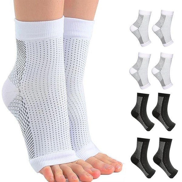 4pcs Calcetines de neuropatía,Tobilleras Deportivas de Compresión,Soporte Tobillo Elástico Transpirable para Mujere y Hombre,Estabiliza el Tobillo y Previene Torceduras, para Soporte y Compresión, Recupera Lesiones como Fascitis Plantar (S/M)