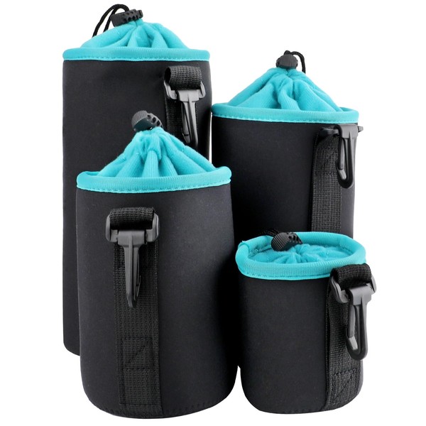 - Package Includes: You will get a set of four neoprene lens pouches: S, M, L, XL. Water-resistant lens bags for Canon, Nikon, Sony and other DSLR and Mirror-less camera lenses in different sizes.