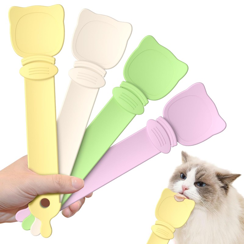 4Pcs Cat Strip Feeder Spoon, Cat Treat Spoon Squeeze for Wet Food, Easy Grip Design-Green&Yellow&Pink&White