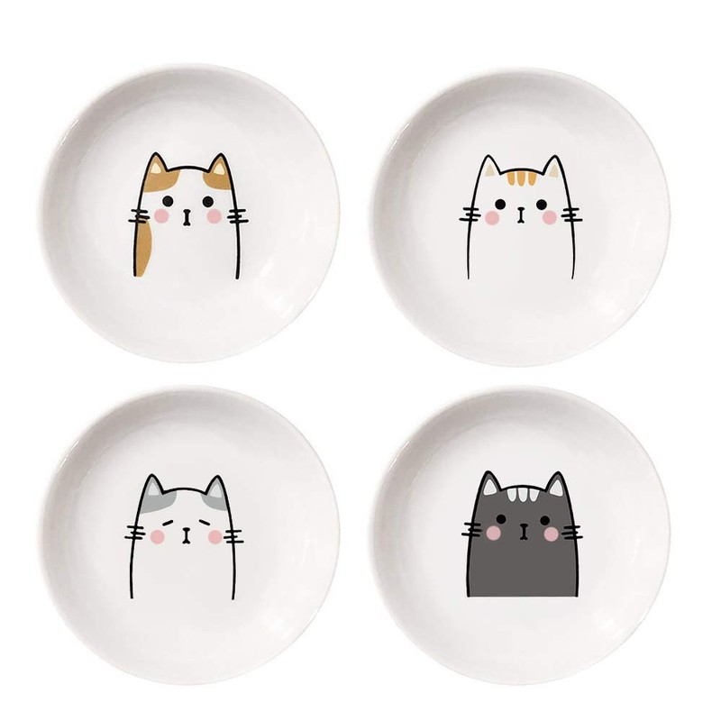 4pcs Ceramics Cat Dinner Relish Dishes Seasoning Dishes Dipping Appetizer Plates