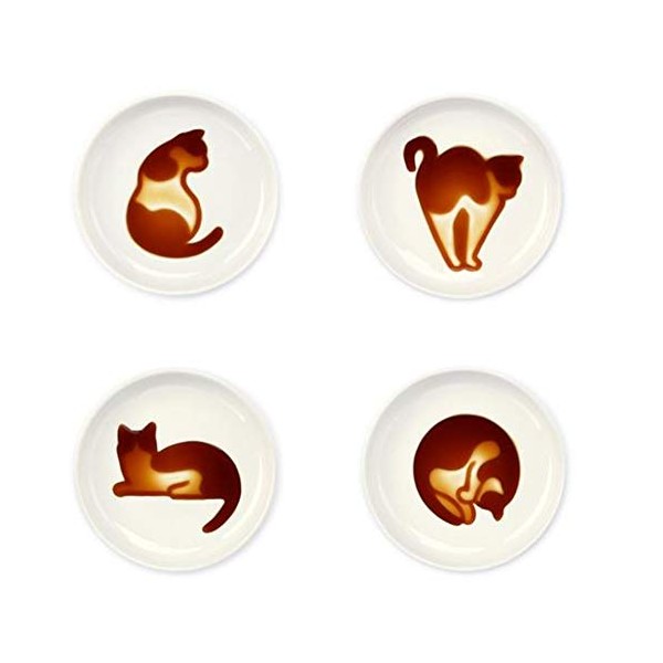 4pcs Ceramics Cat Relief Seasoning Dishes Sushi Dipping Bowl Appetizer Dessert Plate
