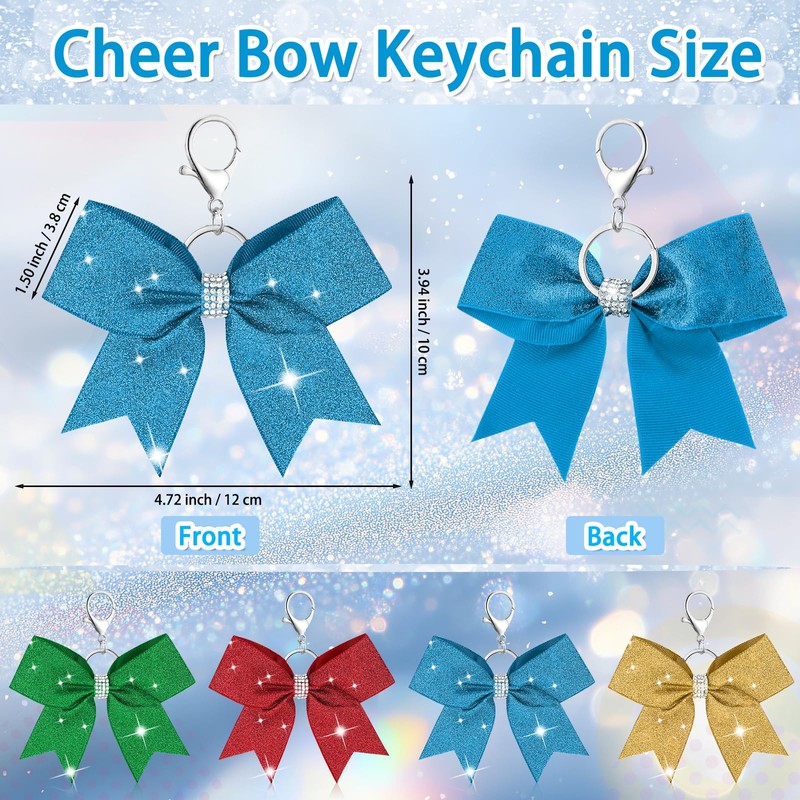 - 【Glitter Bow Keychains】You will get 4 pieces of cheer bow keychains in different bright colors. These bow keychains are embellished with a glittering finish, adding a decorative appeal to any bag outfit. Enough quantity is enough to share with family and friends.