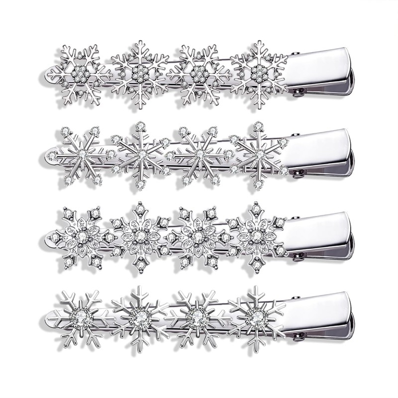 - ❉ Christmas Hair Clip -- Let the joy of winter season into your look with our sparkling rhinestone snowflake hair clips. One pack including 4PCS alligator hair clip with delicate crystal snowflake wrapped, elegant and festive, the perfect holiday hair accessory for women girls