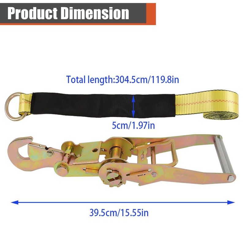 - Professional grade strap and ratchet mechanism replacement for hauling car UTV trucks trailer