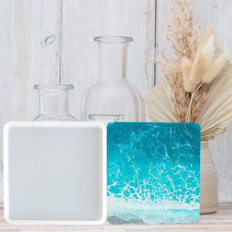 4pcs Coaster Molds for Resin Casting,Square Resin Epoxy Silicone Molds for Making Coasters Geode,Cups Mats, Home Decoration