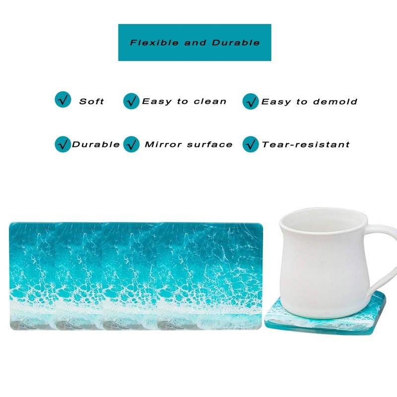 - Silicone Coaster Molds: 4pcs coaster molds are made of high-quality silicone with smooth surface,the finished products has a mirror effect.
