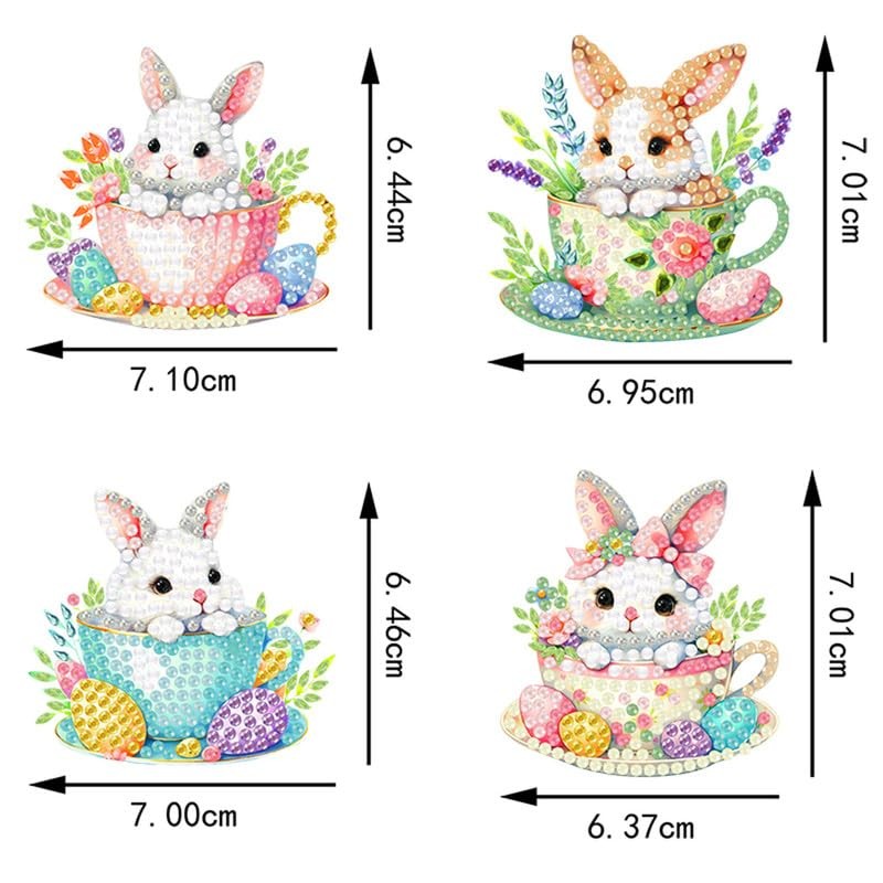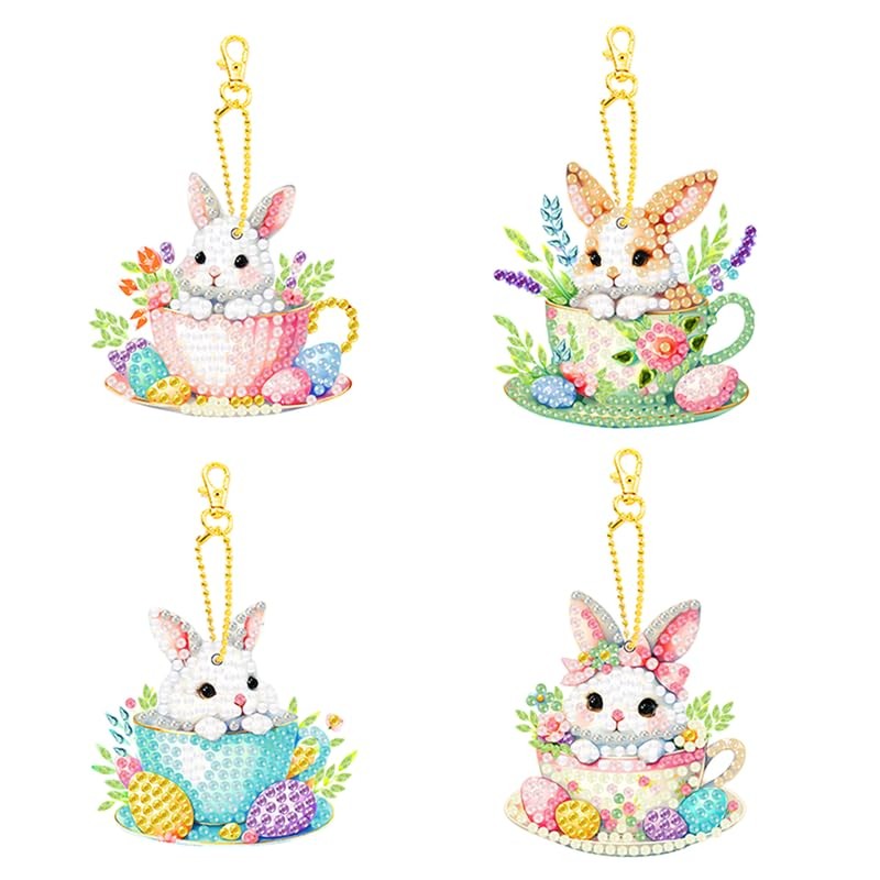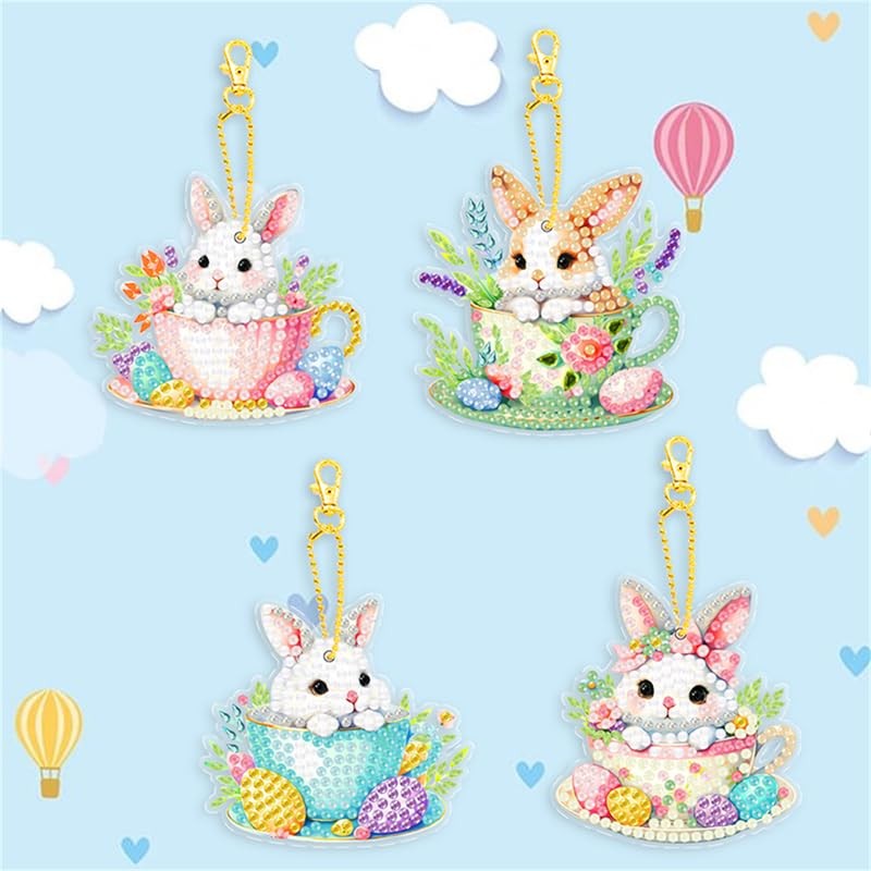 4pcs Diamond Art Keychain Kit DIY Handmade Painting Craft Kit 5D Mosaic Art Diamond Painting Special Shape Diamond Key Chain Accessories Bag Accessories (Cute Rabbit Diagram Keychain)