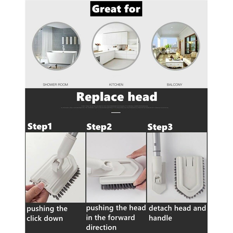 • Replaceable Stiff Bristle Head: Made of high-quality PP material. Firm sturdy bristles are not easy to fall out. With swiveled head pivots for scrubbing tough grime, hard to reach spots, corners and recesses as well as grout lines at different angles
