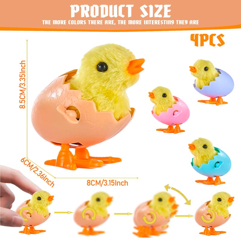 - Set content: 4 Packs Easter chicken wind up toys, The shape that emerges from the shell instantly catches your eye
