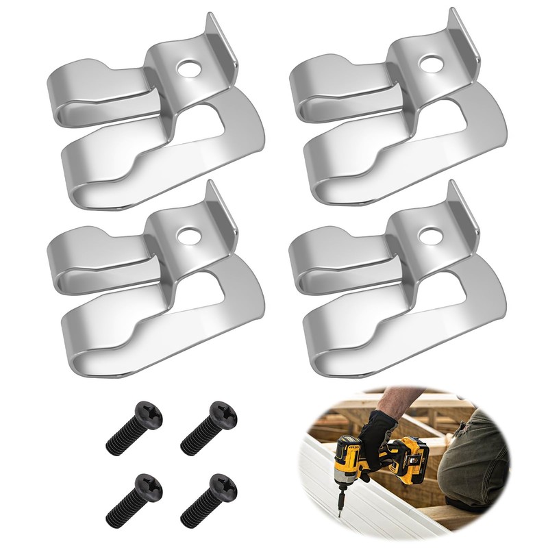 <p>This set includes 4 iron impact driver belt hooks with screws, specifically designed for Dewalt cordless drills. Each clip is made from durable rust resistant iron, offering strong support and a professional finish. Compatible with Dewalt models including
