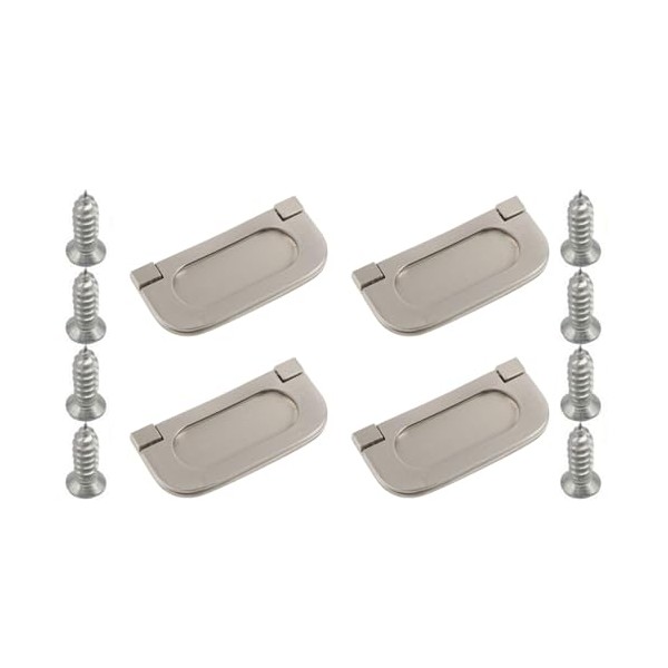 4pcs Flush Ring Pull Zinc Alloy Cabinet Drawer Pull Handle, Stainless Steel Pull Handle, Invisible Door Knob with Screws