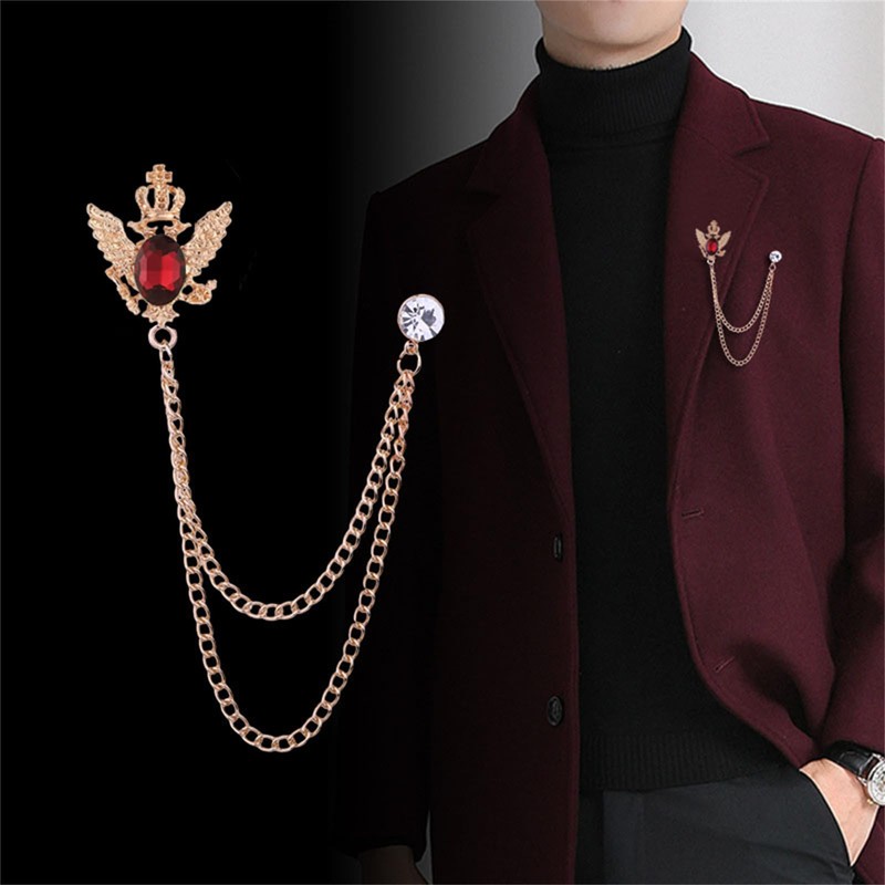 - 【 HIGH QUALITY】:The brooches for men suit are made of high quality metal and shiny colorful gems,The chains are very firm. The high-quality button can be easily put on and took off, and is firmly fixed to your suit