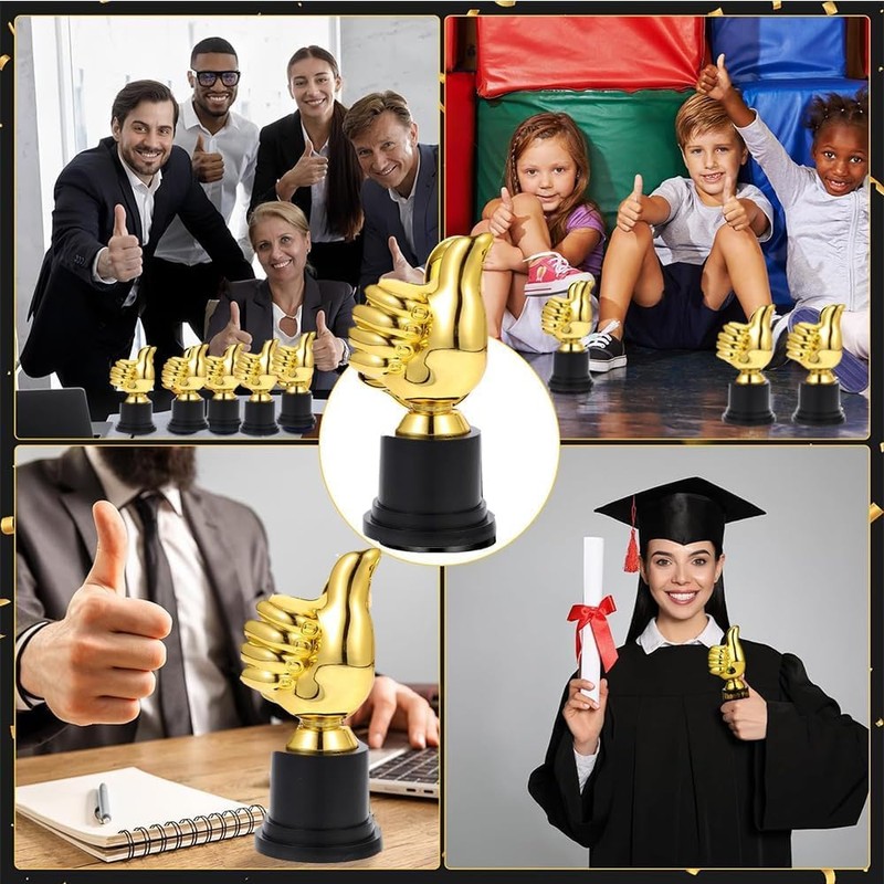 - Widely Usage: These thumbs up award trophies can be widely applied for many activities and games, you can apply it as a meaningful reward for students, sportsmen, teachers, coaches, employees of the month, teams at work, good stuff, school sports banquet and so forth.