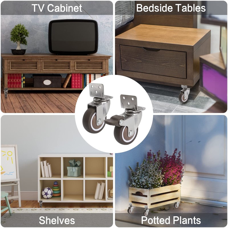 - [Wide Application] these rubber swivel castors are usually used for small and medium DIY projects and the installation of moving furniture that can be used indoors and outdoors. Examples of this include cots, bassinets, plant stands, kitchen cabinets, chest of drawers, toy boxes, bookshelves, storage shelves and other small mobile devices and furniture.