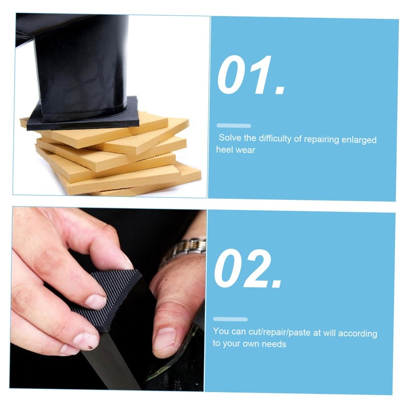 - The heel repair pad is suitable for square shape heels. Also, it can help to adjust your heel bent conditions and make it all normal Shoes Sole Protector.
