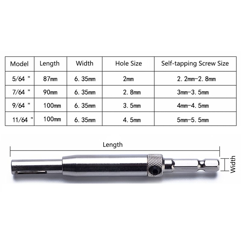 - 4 sets of the most often used sizes for carpenters, cabinet, furniture makers and other wood working trades. (4 size: 5/64 ", 7/64 ",9/64 ",11/64")