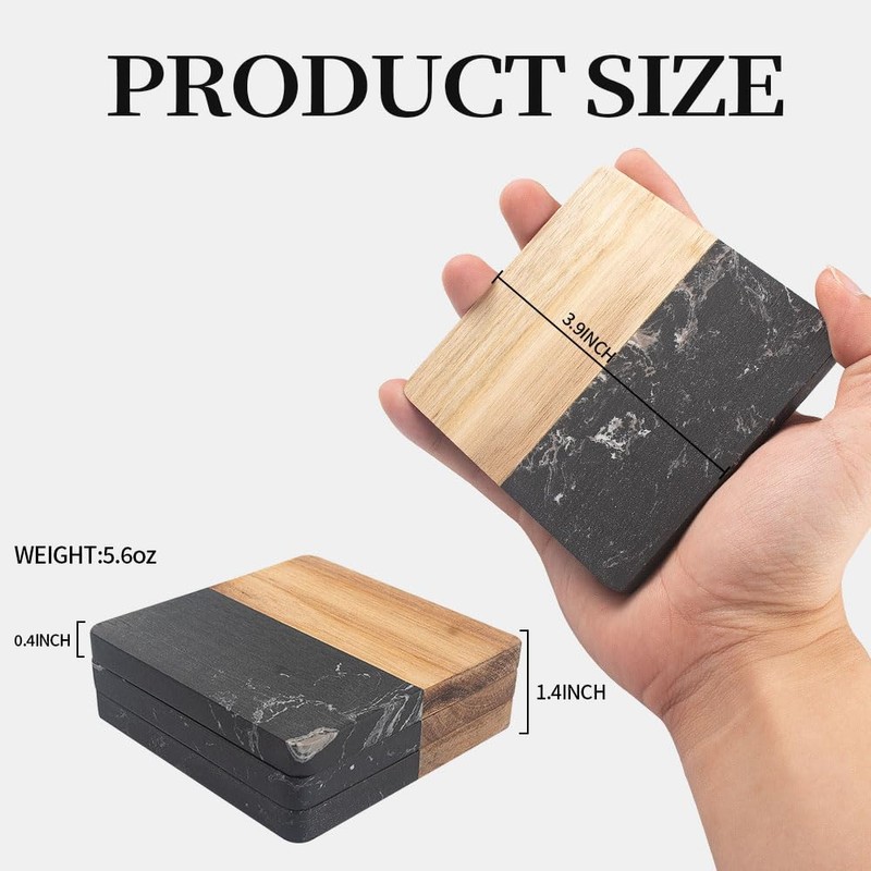 - 4Pcs Marble Wood Splicing Coasters for Drinks