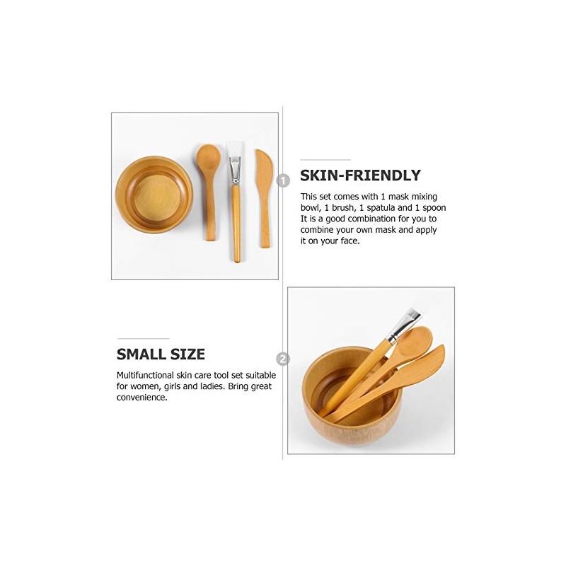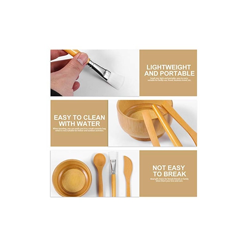 4pcs Mask Brush Bowl Set Clay Tool Clay Mixing Bowl Kit Skin Care Bowl Face Tools for Cream Facial Mask Diy Tool Spatula Silicone Spoon Wooden Bamboo Tableware