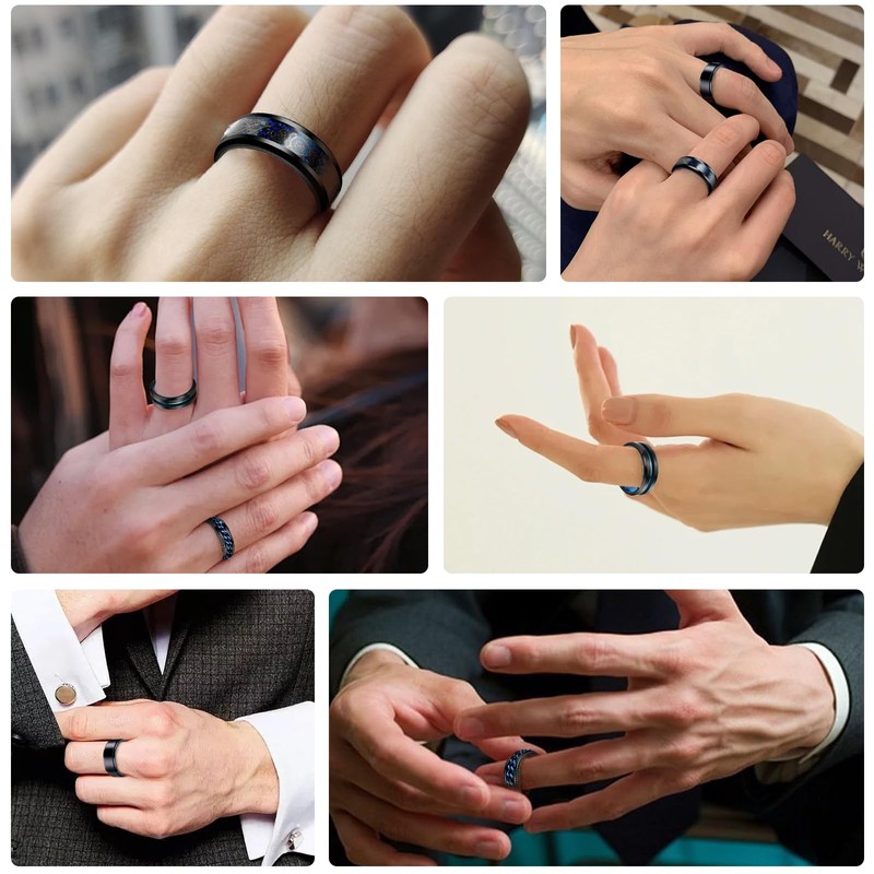 4Pcs Mens Rings Set Anxiety Spinner Chain Sandblasted Rotation Fidget Band Cool Bicycle Hip Hop Stainless Steel Male Jewelry 9