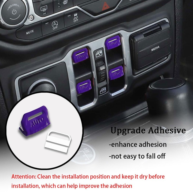 Attention: Please clean the installation position before installation to avoid dust and sweat stains that may cause poor adhesion of the backing adhesive This window switch button decorative cover has bright colors that can decorate your car. It uses car specific adhesive backing, which is easy to install and not easy to detach.