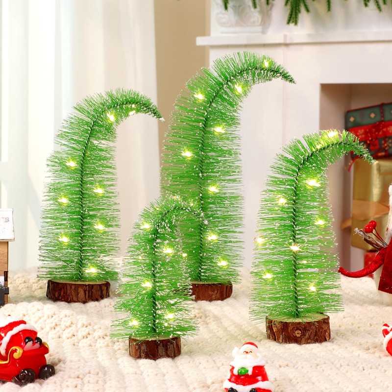 - MINI CHRISTMAS TREES: You will get 4 Christmas trees, the size is 9.5 inches, 7.5 inches and, 6.5 inches and 4.5 inches respectively, these mini Christmas trees exude warm colors, add a touch of brightness to your holiday dress up and create a warm Christmas atmosphere.