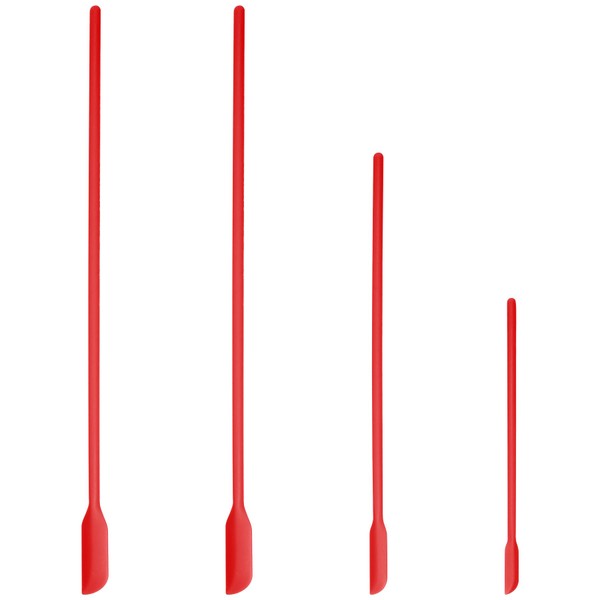 4pcs Mini Silicone Spatula Set, 3 Size Makeup Spatula Small Rubber Spatula for Thin Jar Skinny Openings Bottles, Tiny Scraper for Kitchen and Cosmetic, Multipurpose Scraping Mixing Tools (Red)
