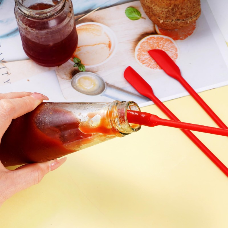 - PRACTICAL JAR SPATULAS: The small silicone spatula is designed with long handle and narrow head, allows it to reach deeply into the bottle bottom. Mini spatula fit well with various containers, jars and bottles, especially for those with skinny openings. Flexibility head that can easily bypass the curves and corners of the container, save time and money.