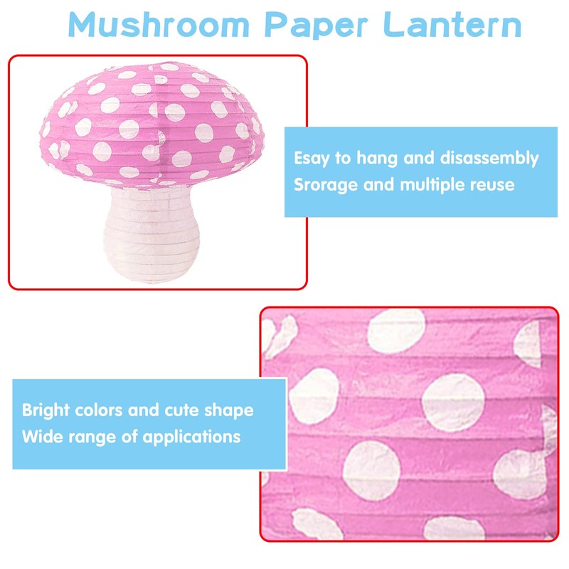 - Wide Applications: Mushroom paper lanterns are very vivid and beautiful, ideal decoration for most occasions. For example apply them in children's room decoration, holiday theme party, garden wedding, birthday party and ect.