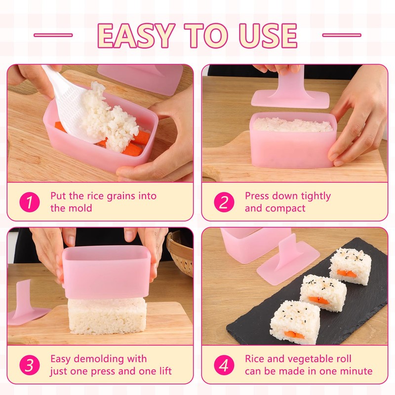 - Easy To Use: Just need to place the rice into the mold, press down the rice tightly, you'll get the rice ball and musubi Then use nori, cheese, ham sausage or other foods to make the delicious sushi Kids especially like it