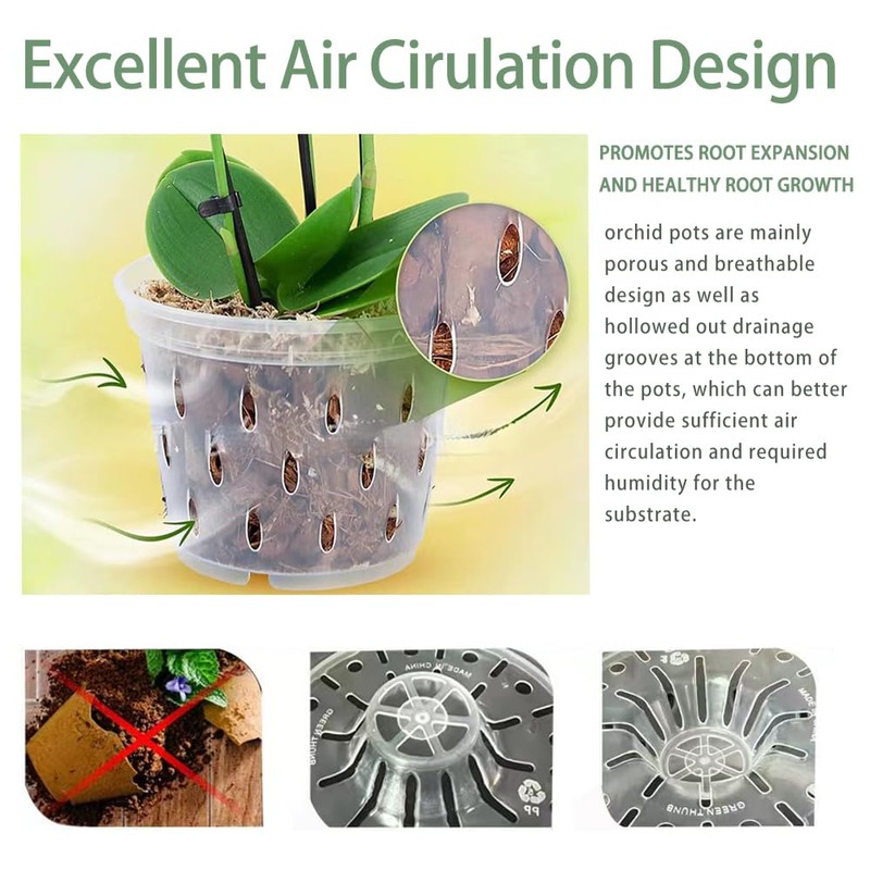 - 【Breathable Design】Our orchid pots are mainly porous and breathable design .This provides sufficient air circulation and drainage for the soil, Its pot bottom is designed with protrusions to increase air circulation for the bottom root system