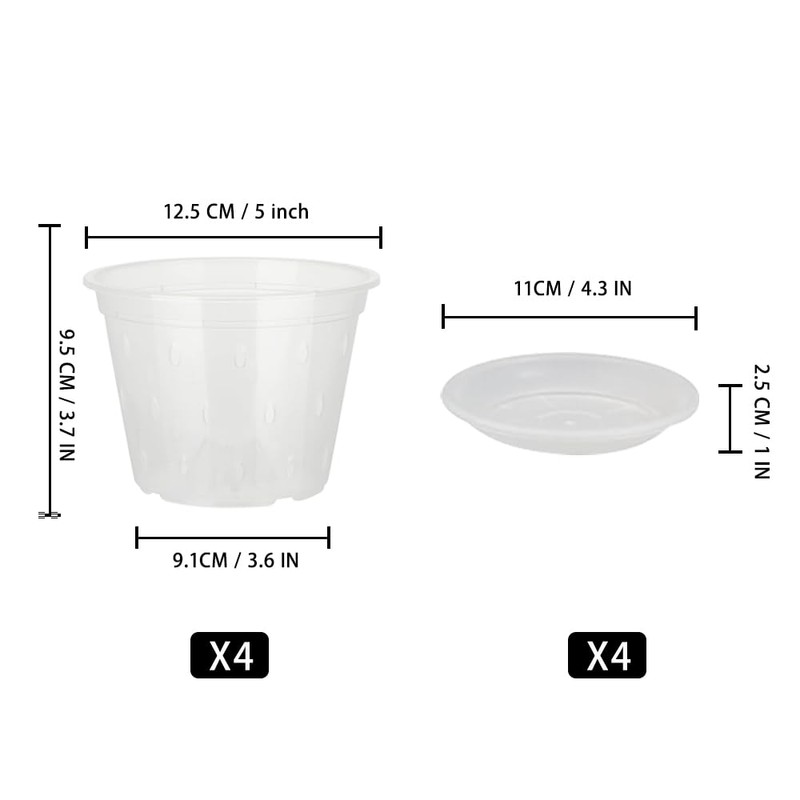 4pcs Orchid Pots (5 Inch /12.5cm), Clear Orchid Pot with Holes and Saucers, Clear Plastic Breathable Orchid pots for Repotting