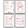 4Pcs Pink Bow Wall Art Christian Aesthetic Pictures Bible Verses Canvas Posters Prints Eclectic Teen Girl Coquette Painting Preppy Wall Decor for Bedroom Dorm College Apartment 12x16in Unframed
