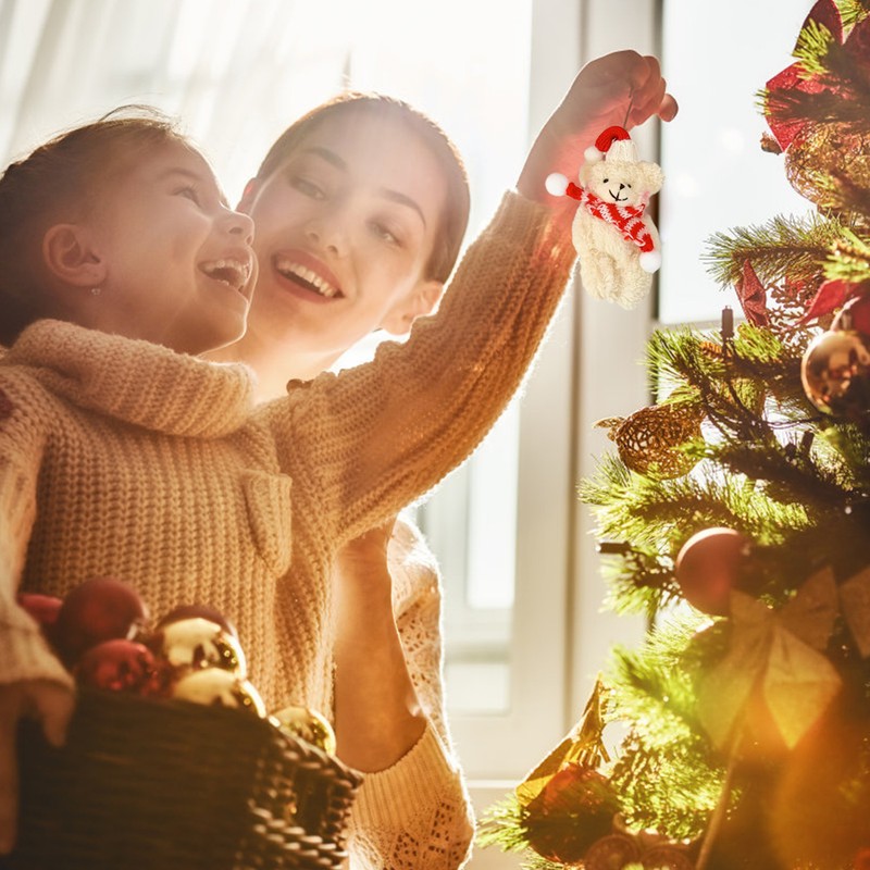 4Pcs Plush Bear Christmas Tree Pendants Soft Mini Bear Doll Toy Cute Blush Bear for Boy Girl Children Gift