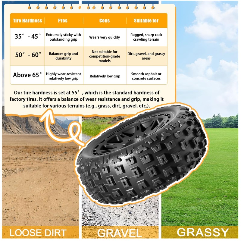 - 【Versatile Tread】Tread pattern ideal for casual driving and grass terrain. Special texture offers non - slip, strong grip, road - holding ability, and durability. Suitable for off - road, on - road, pavement, sand, grass, dirt, gravel, etc.