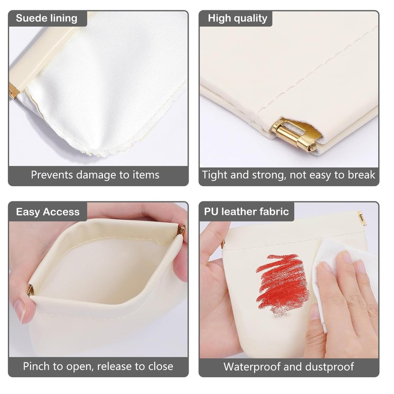 - Hight Quality: Soft pu leather, nice lining, snap closure. These pocket makeup bag allow you to keep your lipsticks and other small items separated, minimizing the risk of them getting tangled or damaged.