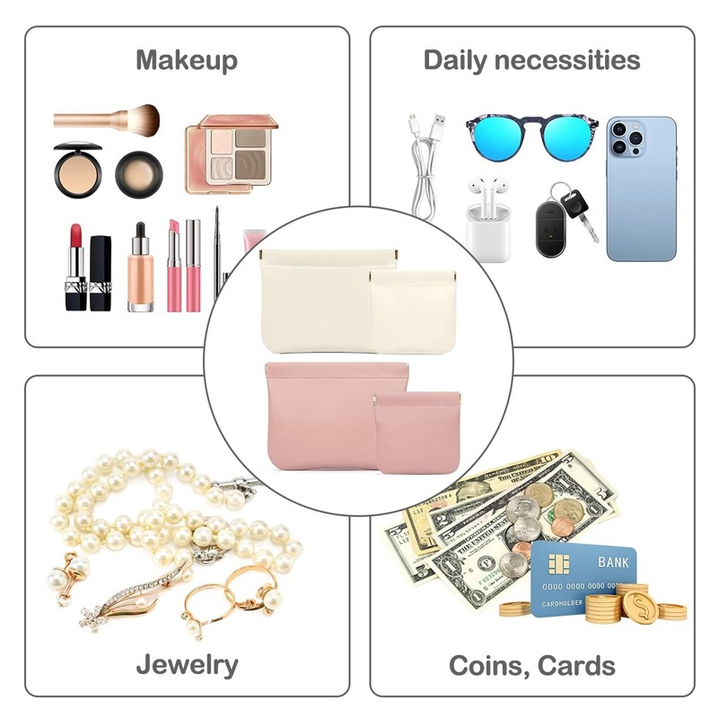4Pcs Purse Pouches, Small Makeup Bag for Purse Mini Pocket Cosmetic Bags for Women Snap Closure Organizer Pouch for Lipstick Cosmetics Headphones Jewelry