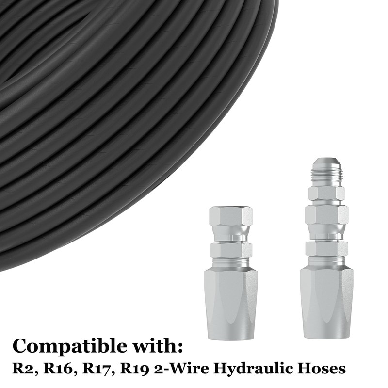 - The hydraulic Hose fittings are 3 parts designed to be reusable. For Use with R2, R16, R17, R19 Double Wire Braided Hydraulic Hoses at 4,000 PSI (Not for Super High-Pressure Skive Hose)