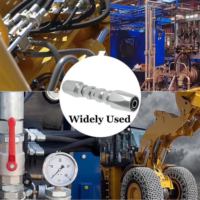 - 1/4 inch reusable hydraulic fittings fit for 1/4" ID, approx. 0.63" OD - #04 Hose;< br > 3/8 inch reusable hydraulic fittings fit for 3/8" ID, approx. 0.73" OD - #06 Hose; < br > 1/2 inch reusable hydraulic fittings fit for 1/2" ID, approx. 0.92" OD - #08 Hose; < br >