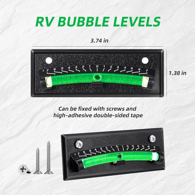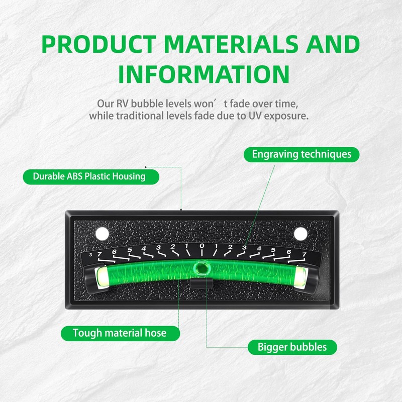 • 🔹 High Visibility & Easy Reading – Designed with a bright green liquid for enhanced visibility, our RV bubble levels stay vibrant and clear over time, unlike traditional models that fade due to UV exposure. The included number scale ensures quick, accurate, and effortless level readings.