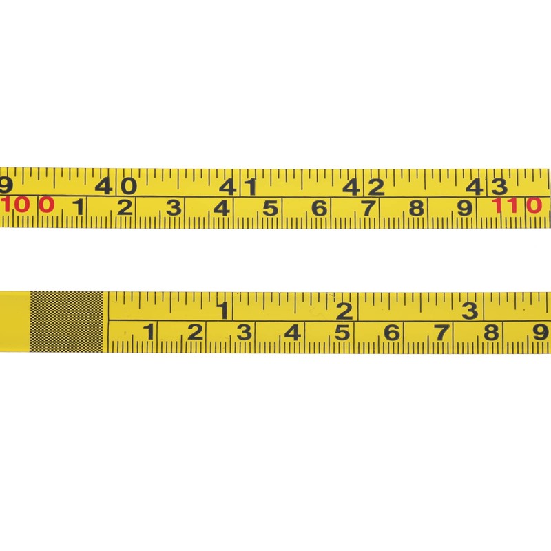 Specifications: Item: Steel Self-Adhesive Measuring Tape Material: Precision steel Length: 44 inches (111 centimeters) Height: 0.5 inches (12.5 millimeters)