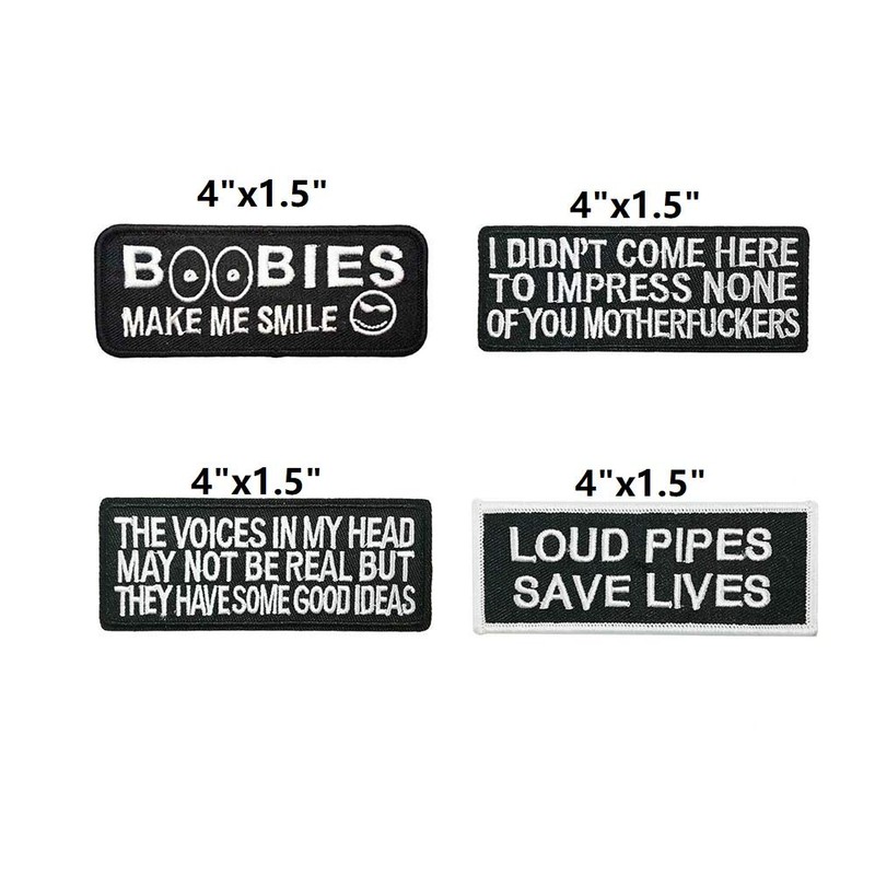4pcs Set Biker Fun Funny Slogan Meme Embroidered Iron on sew on Patches Badge for Motorcycle Leather Jacket Vest