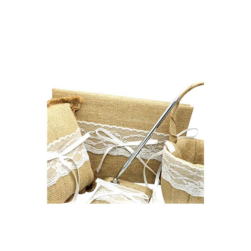 - đ[Size and Info]*Size: Guest book: Approx 10" x 6" inches. Pillow Size: Approx 6"x 6", Basket Diameter: Approx 4.92 inch Height with Handle:Approx 8.27 inches. Material: Lace, Satin, Burlap. High Quality Material. Package Includes: 1 *Guest Book 1* Pen Set 1*Basket 1*Pillow