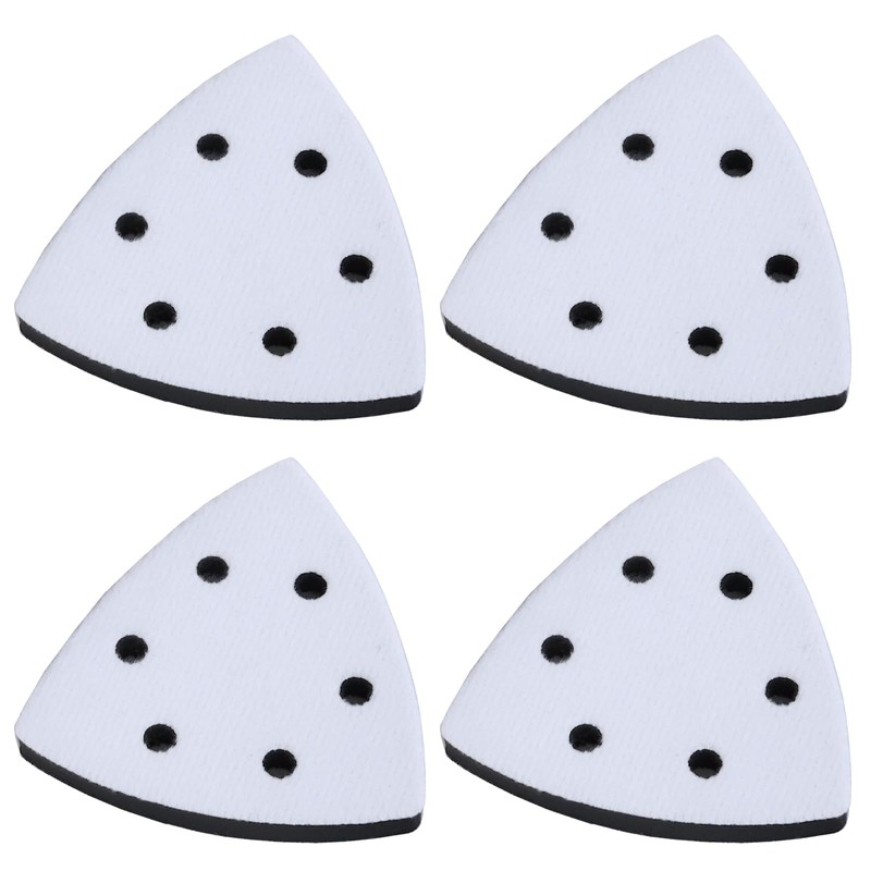 4PCS Soft Interface Pad Triangle Sanding Pad 3.67Inch, 6 Holes Hook and Loop Sponge Cushion Pad for Sanding Machines Impact-Resistant Noise Reduction Set