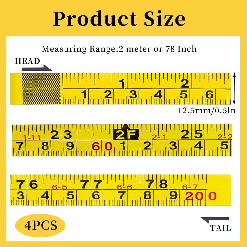 - 【High quality material】Our adhesive tape measure is made of high-quality carbon steel material with excellent strength and toughness, which can maintain good performance even in harsh environments. Whether it's humidity, high or low temperatures, this ruler tape demonstrates excellent durability and stability, making it a reliable and long-lasting companion.