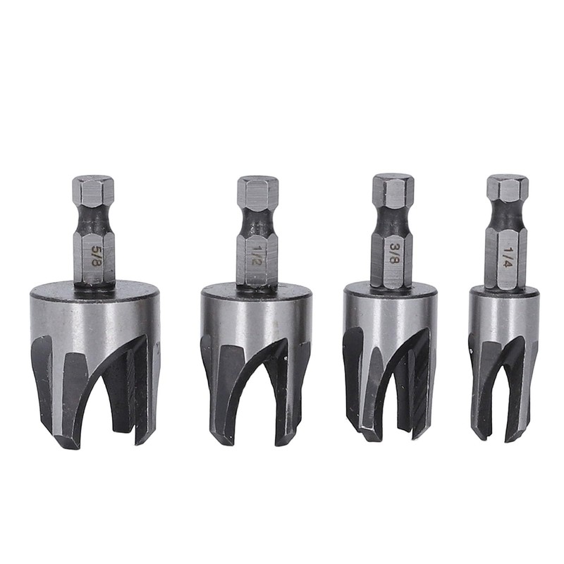 - 4 OUTER DIAMETERS: The Wood Plug Cutter Drill Bit Set is available in 5/8inch, 1/2inch, 3/8inch and 1/4inch 4 types of outer diameters for a variety of sizes