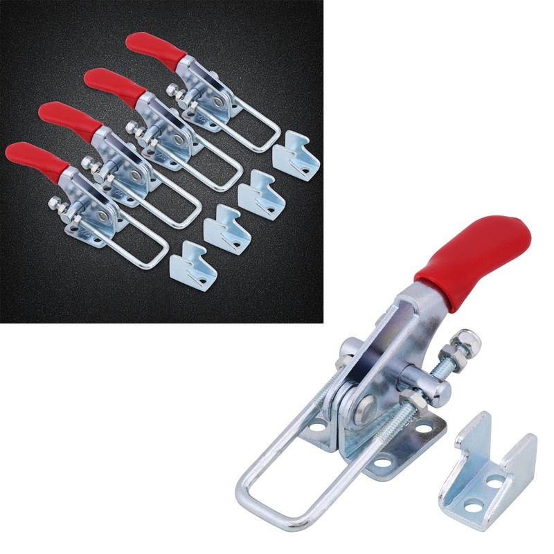 The toggle clamp is made of high quality metal, durable to use. This set included 4pcs toggle clamps which is enough for using. Widely applied to vehicle manufacturing, welding processing, mechanical processing, electronic assembly, electronic equipment, plastic products, light industrial products, etc.