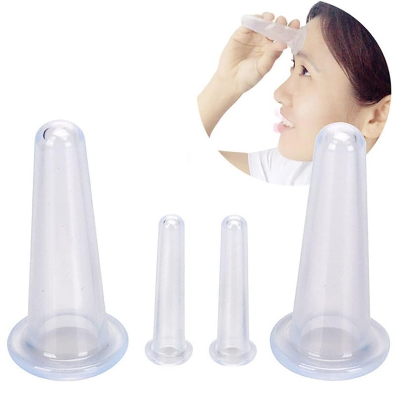 4Pcs Transparent Massage Cupping Set Facial Set for Face Silicone Mini Facial Face Helper Skin Care Neck Back Eyes Cupping Cups to Use, Don't Worry About Burns Health Products,Tools Back Massagers