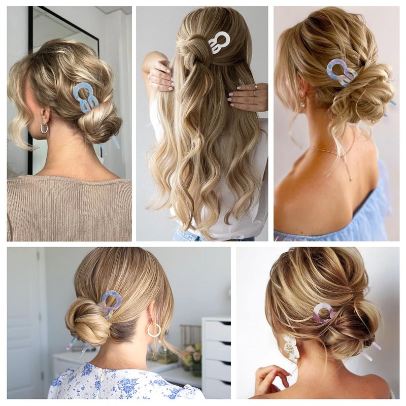 These 4 U-shaped acetate hair pins are lightweight, durable, and perfect for all hair types. Ideal for creating stylish buns, updos, and braids with a secure, comfortable hold. add elegance to any look.