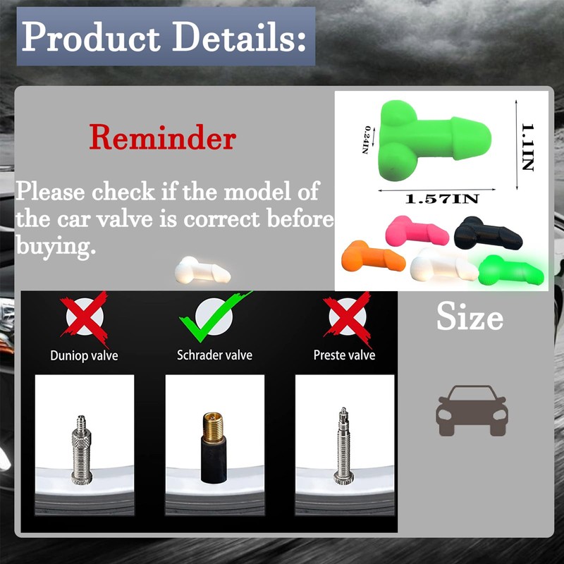 - Widely Applicable: Funny tire caps can be screwed on many styles of tire caps. It is universal and suitable for many cars, bicycles and motorcycles.